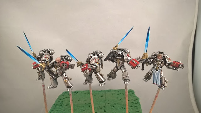 Also started work on all the gold parts of all the models as well as painted the red housing on all the guns. Although I am currently without a single completed model I am moving all of them towards completion so hopefully I go from 0 completed Grey Knights to 18 completed grey knights in flick of a brush